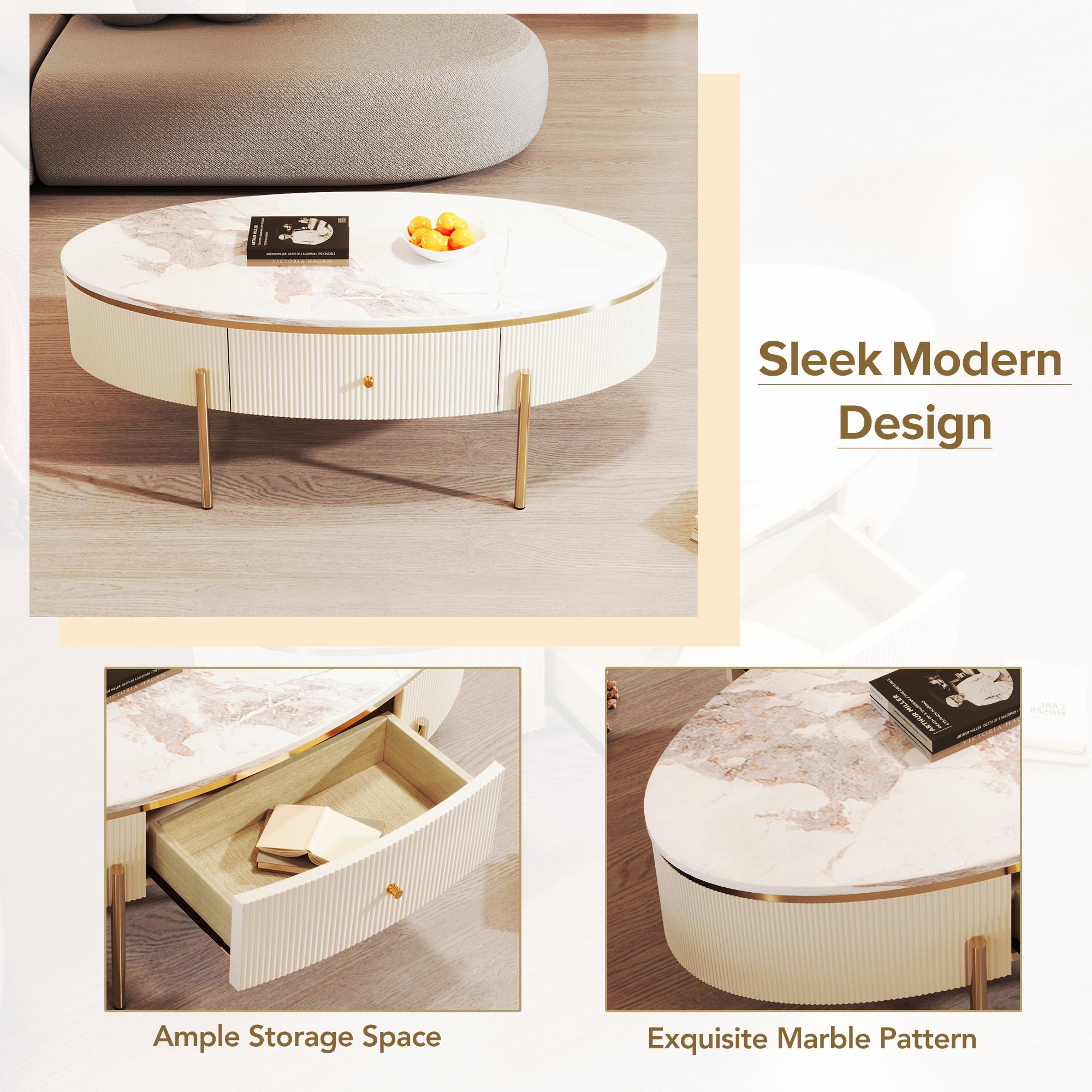 Modern Oval Coffee Table with 2 large Drawers Storage Accent Table